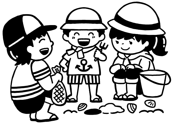 潮干狩りする親子 (576 ダウンロード )